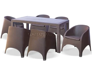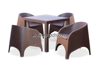 - این ست از جنس پلیمر خاص ساخته شده که مقاوم در برابر نور خورشید و رطوبت است ، با ظاهری زیبا و شیک به شکل حصیربافت که می توانید از آن در محیط های خارج از منزل و در فضای باز استفاده کنید.